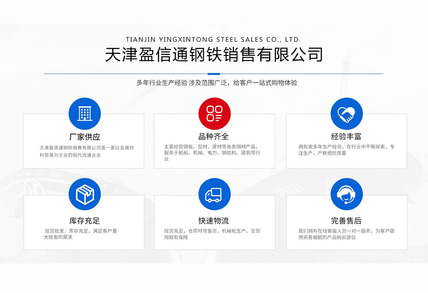 歡迎您訪問天津盈信通鋼鐵銷售有限公司,真誠為您服務。